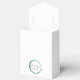 Gracias a los invitados a la reunión de boda con una caja de favores con cinta blanca que presenta un diseño de corona de color verde esmeralda que incluye las iniciales de la novia y el novio y la fecha boda en un guión elegante y gris oscuro. Edite la caja de favores para reemplazar las iniciales y la fecha por la propia.