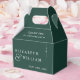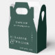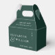 Esta caja de favores de matrimonio minimalista en monograma verde esmeralda puede ser personalizada con su información en tipografía moderna. Diseñado por Thisisnotme©