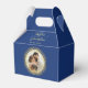 Personalice esta elegante y moderna caja de papel boda con sus nombres, texto de agradecimiento y foto. Colores de diseño moderno y minimalista: azul marino y oro (sin tinta metálica).