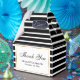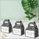 Cajas de favoritas de boda modernas en blanco y negro. Personaliza fácilmente estas cajas de favores de boda a rayas blancas y negras con tus detalles del evento.