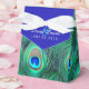 Elegantes cajas de regalo de boda de pavo real azul turquesa y verde esmeralda vibrante, azul real. Puede agregar texto en el estilo de fuente, tamaño y color de su elección en esta hermosa caja de regalo de boda de pavo real azul turquesa.