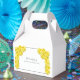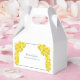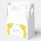 Este diseño presenta rosas rústicas amarillas. Las rosas amarillas se complementan con un elegante borde negro. Los tonos amarillos de las flores rosas crean un ambiente rústico y florido en el jardín. Elegante diseño de caja de favores de boda con elementos modernos. También hay disponibles invitaciones de boda coincidentes y otros artículos de papelería.