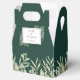 Elegante caja de favores de boda con delicadas hojas de acuarela sobre un fondo verde esmeralda encuadrando tu mensaje de agradecimiento en la tipografía moderna. Puedes personalizar con tu propio mensaje de agradecimiento al revés. ¡Una forma perfecta de agradecerles a sus huéspedes! Diseñado por Thisisnotme©