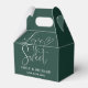 Esta caja de regalo de boda de elegante escritura minimalista esmeralda verde se puede personalizar con su información en tipografía chic. Diseñado por Thisisnotme©