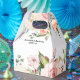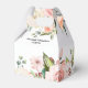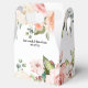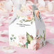 Hermosas rosas rosas rosas rubias, hortensias blancas, hibiscos y una frondosa caja de favores matrimoniales.