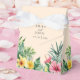 Estas cajas de regalo de boda de flores tropicales de acuarela modernas de melocotón con vegetación se pueden personalizar con su información en tipografía elegante. Diseñado por Thisisnotme©