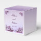 Las animadas vidas son el tema de esta elegante caja de favores matrimoniales que cuenta con pulverizadores de lila rosa y malva sobre un fondo morado. Personalizar el texto para tu ocasión especial.
