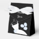 caja de favores con temática de novia en tonos azules con un estilizado vestido boda y flores sobre un fondo negro. Un diseño de personalizable para que puedas personalizar con tu propio texto, imágenes e ideas.