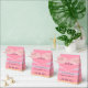El color rosa pastel estampado estilo tienda de campaña favorece la boda. La Novia puede personalizar el texto para que se coordine con el día de tu boda. Todo el texto también es extraíble. El fondo rosado se puede cambiar a su propio color seleccionado. En la parte trasera hay un pequeño lugar agradable para agradecer personalmente a sus invitados o añadir su foto de compromiso.