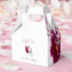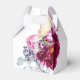 Caja De Favor De Boda. Vaso de champagne. Floral magenta. Elegante.