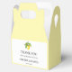 Añade un toque fresco y elegante a tus favores matrimoniales, con esta caja de favores de la boda moderna con limón amarillo. Con un vibrante motivo de limón amarillo, acompañado de una elegante tipografía moderna, este diseño exuda encanto y sofisticación, perfecto para celebraciones soleadas inspiradas en cítricos. Personalizar con sus nombres, fecha de boda o un mensaje corto para crear un detalle personal y memorable para sus invitados. La caja perfecta para poner pequeños favores en ella todavía muestra el tema del boda cítrico.