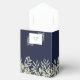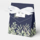 Una elegante caja de favores matrimoniales con delicadas hojas de acuarela sobre un fondo azul marino enmarcando sus iniciales de monograma y fecha especial ambientada en tipografía moderna. Puedes personalizar con tu propio mensaje de agradecimiento debajo de la tapa. ¡Una forma perfecta de agradecerles a sus huéspedes! Diseñado por Thisisnotme©
