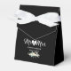 Boda Personalizado Elegante Caja de Favor Floral Blanco Negro con un arco blanco y una hermosa caligrafía blanca y disposición floral blanca. La mejor caja de favores de boda de la historia. Añadir el nombre y la fecha del boda de parejas. Añade tu favor favorito para un regalo de primera.