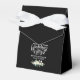 Boda Personalizado Elegante Caja de Favor Floral Blanco Negro con un arco blanco y hermosa caligrafía blanca con Día de Boda y disposición floral blanca . La mejor caja de favores de boda de la historia. Añadir el nombre y la fecha del boda de parejas. Añade tu favor favorito para un regalo de primera.
