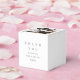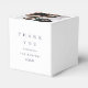 Elegante caja de agradecimiento de boda personalizada con una foto, nombre y fecha en tipografía morada. El color del texto se puede editar fácilmente en sus propios colores personalizados.