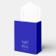 La parte delantera de esta elegante caja de favores nupciales moderna incluye un purpurina falso plateado. El texto del personalizable combina la escritura a mano blanca y los tipos de letra de copperplate sobre un gran marcador y sobre un fondo azul real.