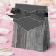 Elegante caja de bienvenida rústica de bodas de madera de granero. Puedes cambiar el color de fondo de la solapa y el arco, y agregar texto a esta bonita caja de favores de bodas en madera de granero.