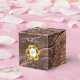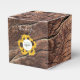 Este diseño presenta girasoles rústicos con un fondo de madera. La corona de girasol enmarca elegantemente la fecha boda. Los tonos amarillos, verdes y marrones crean un ambiente rústico y campestre en el jardín. Elegante diseño de caja de favores de boda con elementos modernos. También hay disponibles invitaciones de boda coincidentes y otros artículos de papelería.