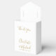 Caja de regalo de boda simple elegante dorada y blanca con nombres de letra signature elegantes y su fecha especial en tipografía moderna. Puedes personalizar con tu propio mensaje de agradecimiento debajo de la tapa. ¡Una forma perfecta de dar las gracias a tus invitados! Diseñado por Thisisnotme©
