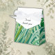 Esta caja de favores matrimoniales viene en diferentes tamaños, formas y papeles. Es personalizable con su Intro o monogramos. La combinación armoniosa de la misma muestra una armoniosa mezcla de hojas tropicales de vegetación esmeralda, monstera, hojas de palma de la naturaleza. Hobinishop