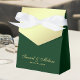 Caja de favores para bodas de oro y verde personalizada.