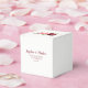 Estas cajas de favores de boda presentan un diseño de boho acuarela con rosas, plumas y luces de cuerdas, así como nombres de novias y novios, mensaje de agradecimiento y fecha de boda. Forman parte de una colección que incluye una amplia gama de artículos de papelería para bodas y productos para novias. Visite las páginas de colección de nuestra tienda para ver toda la gama de productos coincidentes que puede personalizar para su boda.