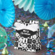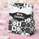 Caja de Navidades blancos y negros con Santa, reno, albóndigas y copos de nieve sobre fondo negro y blanco a cuadros. Gran idea para envolver tus regalos para tu amigo o miembro de la familia. Texto personalizado