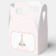 El Bonjour Bebe Paris French Pink Eiffel Baby Shower Favor Boxes cuenta con la Torre Eiffel dorada con un arco rosado encima y flores rosas con vegetación. El reverso de la invitación incluye rayas rosas. Envíame un mensaje para obtener los ajustes necesarios o los elementos coincidentes.