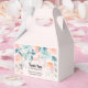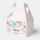 Una minúscula caja de favores con un elegante borde floral. Flores y hojas en rosa y verde.