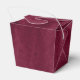 Deslumbrante caja de favores vintage con acentos de ciruela borgoña.
