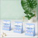 Trillizos de bebé lindo con TEPs azules colgando en un tendedero con fondo de cielo y nube para favores de la ducha bebé de agradecimiento Texto puede ser cambiado.