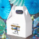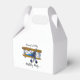 Send your guests home with a piece of the sky in these charming paper favor boxes, featuring our delightful yellow-winged, blue-fuselage biplane with a radial engine! Designed with convenient cut-in handles, these boxes are perfect for holding small treats and party favors, making them easy for little hands to carry. They're a stylish and practical way to thank your guests for celebrating your high-flying event.