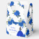 This birthday party favor box features faux glitter royal blue floral flowers and a beautiful princess with brown hair and an elegant dress. This is perfect for a birthday party.