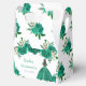 This Quinceanera favor box features faux glitter green floral flowers and a beautiful princess with brown hair and an elegant dress. This is perfect for a Quinceanera birthday party.