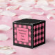 Caja de favores clásica de buffalo check rosa y negro. El texto en ambos lados de la caja es personalizable. Si usa el botón/herramienta 'editar diseño', también puede agregar sus propias imágenes/fotos. Disponibles otras gamas de colores.