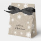 Esta elegante caja de regalo cuenta con un fondo de burlap ilustrado, acentuado con copos de nieve y un hermoso guión de cinta, que es fácil de personalizar.