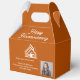 This professional burnt orange and white favor box is customized with your real estate company name and realtor photo under the modern cursive script. Congratulate your clients on a Happy Housewarming with these custom congratulations boxes. Add your realty agent photo for marketing underneath the modern house logo.