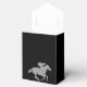Las cajas de favores de fiesta estilo tienda de campaña presentan un caballo de carreras con purpurina plateada falsa sobre negro y rayas negras y blancas en la parte superior. ¡Cambia los colores de fondo a cualquier cosa! Ideal para fiesta de Derby, ducha de novia de Derby, fiesta de cumpleaños, fiesta de jubilación y más. Artículos COINCIDENTES en nuestra colección.