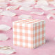 Agregue esta clásica caja de regalos de fiesta diseñada con cuadros de gingham en naranja pálido a su evento. Un diseño divertido para cualquier baby shower, despedida de soltera o fiesta de cumpleaños.