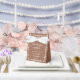Elegante caja de terracota para recuerdos de baby shower con delicado banner de papel picado blanco y marco estilo encaje ornamental. Personalizada con el nombre del bebé y la fecha del evento, esta encantadora caja de regalo añade un toque refinado a tu celebración de Cielito Lindo o baby shower clásico.