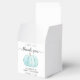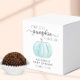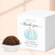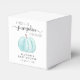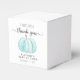 Una bonita caja de favores de un bebé con una acuarela azul pastel de una calabaza y "un pequeño y dulce agradecimiento" y "una calabaza dulce está en camino" escrito en una simple tipografía gris y un guión elegante con toques. Personaliza fácilmente el nombre y la fecha de ducha de la madre en la coordinación de la tipografía gris.