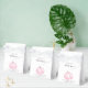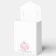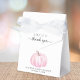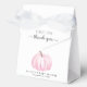 Cajón de favores de la fiesta de la niña pequeña con "gracias" y "una calabaza dulce en camino" en una simple tipografía gris y un guión elegante con toques y una acuarela de una calabaza rosa.