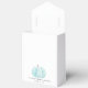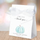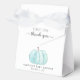 Cuta caja de favores de la fiesta de la ducha de bebé con "gracias" en una simple tipografía gris y un guión elegante con toques y una acuarela de una calabaza azul.