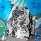Un graffiti digital hecho en tonos negros, blancos y grises.