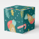Este año puedes coordinar tus regalos de Navidad para familia, amigos cercanos o conocidos. Este patrón de Navidades diseñado por artistas es perfecto para un fiesta Navidad en casa, pero también puede ser utilizado para una fiesta de vacaciones en una escuela o una empresa. El diseño incluye motivos genéricos para las vacaciones de invierno: caña de caramelos rojos y blancos, coloridas palomas de tortuga, hojas y bayas rojas, ramos de pino en agua y verde lima y copos de nieve sobre un fondo azul verde azulado oscuro. Utilice este diseño caprichoso para regalos de Navidad, regalos de solsticio o regalos de cumpleaños de invierno. Personalice este patrón con sus propias imágenes, iconos o texto. Bolsas de regalo coordinadas, papel para envolver, papel de tejido, etiquetas de regalo y cajas de regalo.
