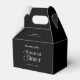 Envía a los invitados a casa con un elegante token de agradecimiento utilizando estas cajas de agradecimiento para la cena de ensayo Modern Chic. Diseñadas con tipografía elegante y una estética minimalista en blanco y negro, estas cajas de favor agregan un toque refinado a la celebración de tu fin de semana de boda. Perfectas para dulces, golosinas, velas miniatura, recuerdos o regalos de bienvenida. Ideales para cenas de ensayo formales, semi-formales, en azotea, jardín, restaurante o de etiqueta. Combínalas con menús, servilletas, posavasos y señalización a juego para una presentación coherente y digna de las redes sociales.