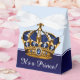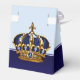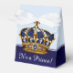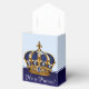 Elegantes cajas de regalo azules y doradas para baby shower de príncipe. Estas hermosas cajas de regalo azules y doradas para baby shower de príncipe se pueden personalizar con texto y puedes cambiar el color de la cinta.