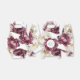 Una caja de favores de despedida de soltera ultra femenina que captura la esencia de la elegancia rústica con su abundante despliegue de peonías en profundo burgundy, ciruela, rosa polvoriento y suave blanco marfil en armonía. Los elementos botánicos femeninos se combinan como si estuvieran en un suntuoso ramo de jardín y hacen que entretener a sus invitados sea muy divertido. El texto manuscrito con letra moderna deletrea "Despedida de Soltera" con un estilo encantador. Personalice la plantilla de texto con el nombre de la futura novia.
