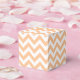 Hip y moderna Chevron Favor Box. Esta buena caja de favores, disponible en cinco formas, presenta un patrón de zag de cremallera de chevron en coral y blanco. Añadir texto a este diseño para darle un toque personal.