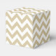 Hip y moderna Chevron Favor Box. Esta buena caja de favores, disponible en cinco formas, presenta un patrón de zag de cremallera de chevron en beige y blanco. Añadir texto a este diseño para darle un toque personal.
